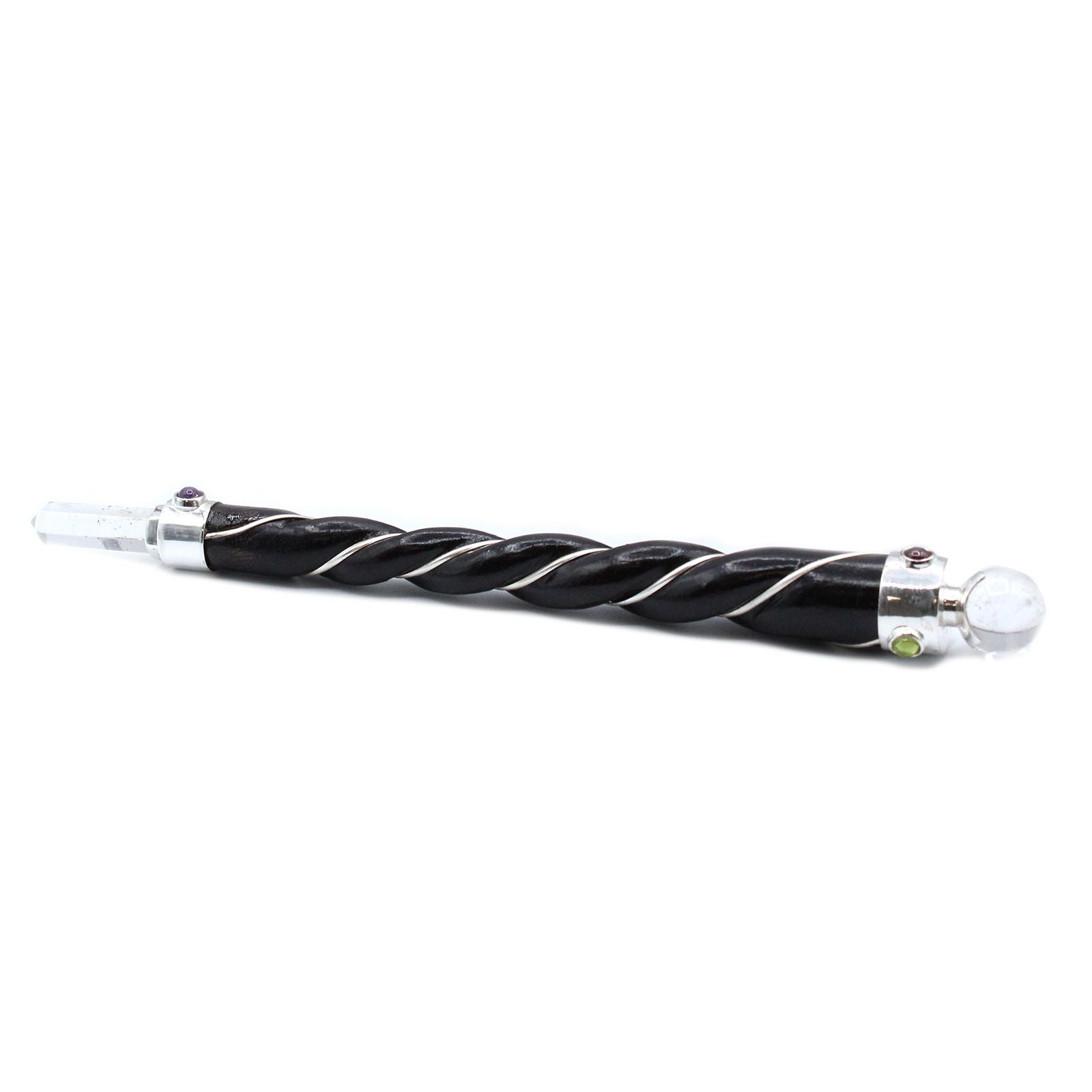 Channel energy with the Twisted Healing Wand, featuring a silver design and rock quartz sphere for balance, clarity, and powerful spiritual healing.
